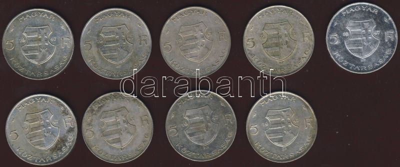 1947. 5Ft Ag "Kossuth" (9x) T:2,2/3 https://www.darabanth.com/de/82-Fernauktion/82.0/Numismatik/~254/1947-5Ft-Ag-Kossuth-9x-T2-23~II173951