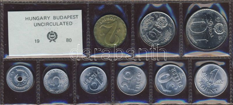 1980. 2f-10Ft 9db klf, forgalmi szettben T:BU https://www.darabanth.com/de/82-Fernauktion/82.0/Numismatik/~254/1980-2f-10Ft-9db-klf-forgalmi-szettben-TBU~II173996
