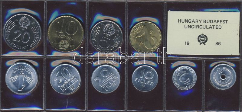1986. 2f-20Ft 10db klf, forgalmi szettben T:BU https://www.darabanth.com/de/82-Fernauktion/82.0/Numismatik/~254/1986-2f-20Ft-10db-klf-forgalmi-szettben-TBU~II174002
