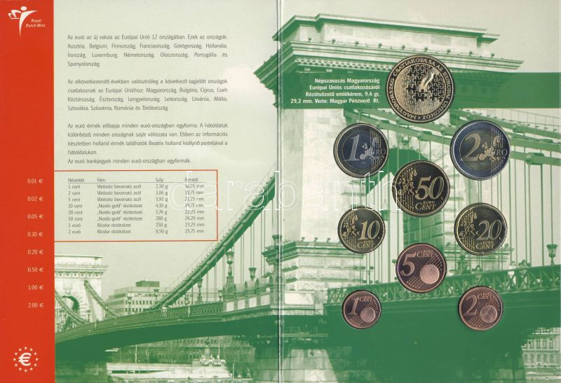Beschreibung: 2003. Euro-információs készlet 1c-2Euro, benne "Népszavazás Magyarország EU csatlakozásáról" emlékérem T:1,PP
