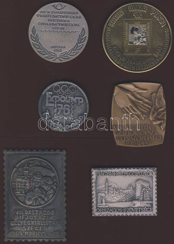 Beschreibung: 1976-85. 8db kf bélyegkiállítás alkalmából kiadott emlékérem és plakett T:1,2