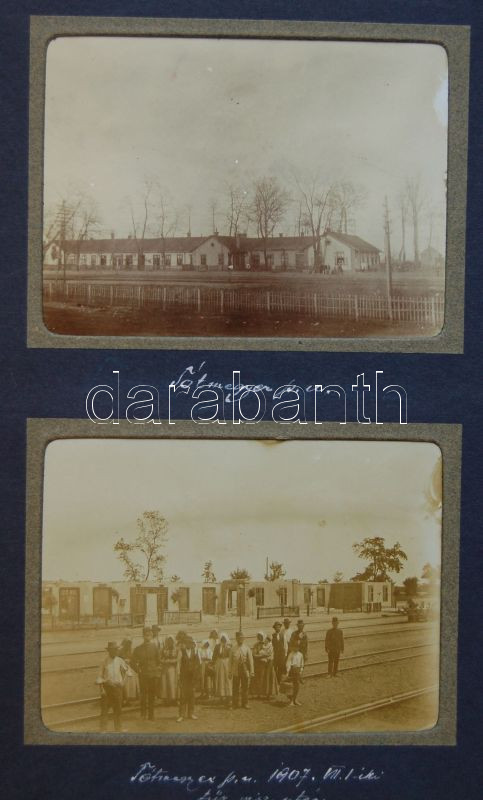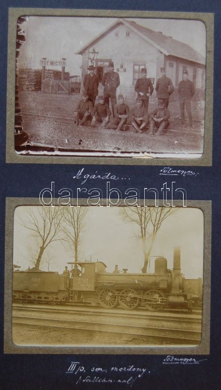 Beschreibung: cca 1900 38 db rendkívül érdekes és mozgalmas főleg felvidéki fotó képaláírásokkal albumban, benne fényképek a tótmegyeri és pozsonyi pályaudvarokról