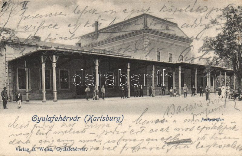 GYulafehérvár Parkpavillon (EB) https://www.darabanth.com/de/83-Fernauktion/83.0/Ansichtskarten/~5056/GYulafehervar-Parkpavillon-EB~II169314