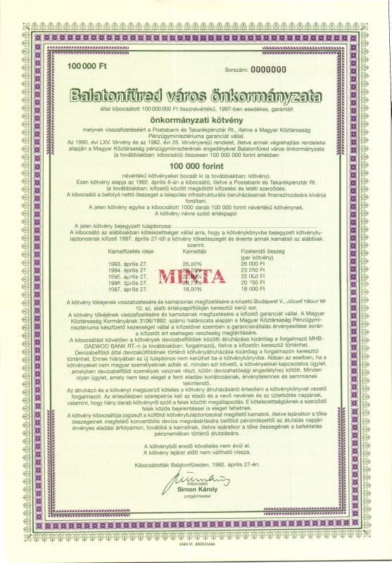 Beschreibung: 1980-as 1990-es évek 3db modern magyar kötvény benne egymásutáni kötvényszámok + 11db klf kötvény "Minta" fny-sal T: I (többsége), III(2x)
