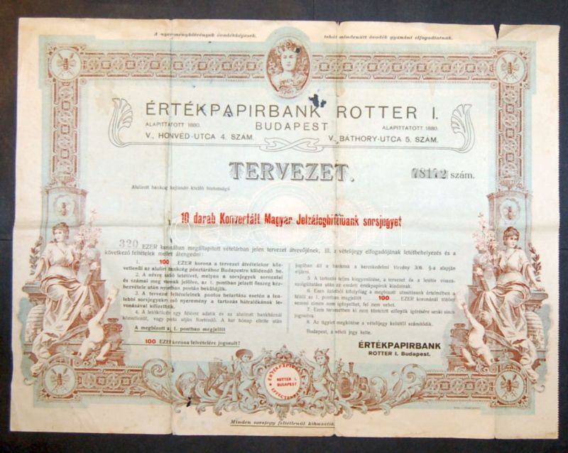 cca Századforduló "Értékpapírbank Rotter I." Értékpapír tervezet T:IV https://www.darabanth.com/de/83-Fernauktion/83.0/Numismatik/~5067/cca-Szazadfordulo-Ertekpapirbank-Rotter-I-Ertekpapir-tervezet-TIV~II174173