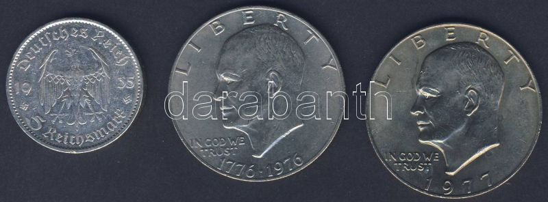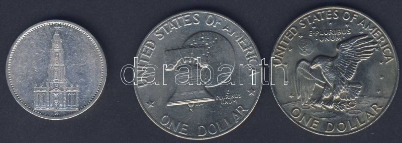 Beschreibung: Német 3. Birodalom 1935A 5M Ag "Garnisonkirche" T:2/3 + USA 1976+1977. 1$ 2klf db T:2,2/3