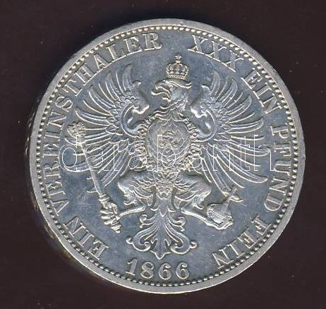 Német államok/Poroszország 1866. Vereinsthaler Ag T:2/3+ pici ph https://www.darabanth.com/de/83-Fernauktion/83.0/Numismatik/~5073/Nemet-allamokPoroszorszag-1866-Vereinsthaler-Ag-T23plus-pici-ph~II177152