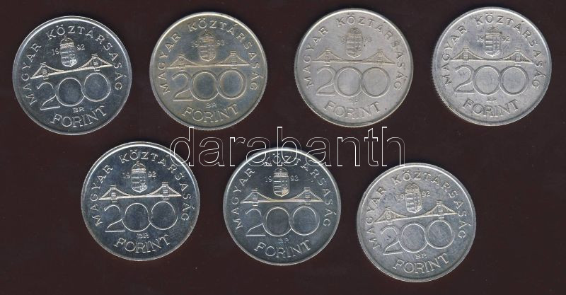 1992-93. 200Ft Ag (8x) "MNB" T:BU,2 https://www.darabanth.com/de/83-Fernauktion/83.0/Numismatik/~5074/1992-93-200Ft-Ag-8x-MNB-TBU-2~II177383