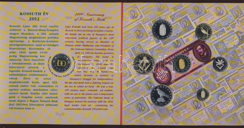 2002. 1Ft-100Ft 8klf db, szettben, benne "Kossuth" 100Ft T:PP Csak 300... https://www.darabanth.com/de/83-Fernauktion/83.0/Numismatik/~5074/2002-1Ft-100Ft-8klf-db-szettben-benne-Kossuth-100Ft-TPP-Csak-3000db~II174670