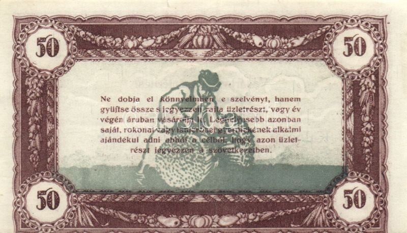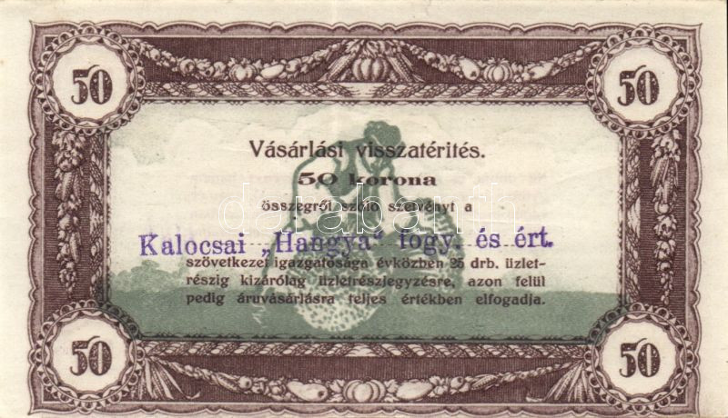 1920-as évek eleje 50K vásárlási visszatérítés lila "Kalocsai Hangya f... https://www.darabanth.com/de/83-Fernauktion/83.0/Numismatik/~5076/1920-as-evek-eleje-50K-vasarlasi-visszaterites-lila-Kalocsai-Hangya-fogy-es-ert-belyeg~II158594