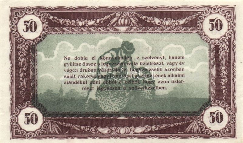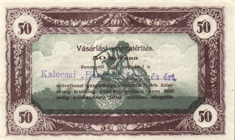 1920-as évek eleje 50K vásárlási visszatérítés lila "Kalocsai Hangya f... https://www.darabanth.com/de/83-Fernauktion/83.0/Numismatik/~5076/1920-as-evek-eleje-50K-vasarlasi-visszaterites-lila-Kalocsai-Hangya-fogy-es-ert-belyeg~II158604