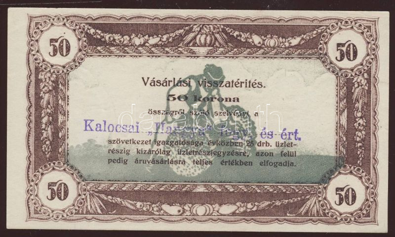 1920-as évek eleje 50K vásárlási visszatérítés lila "Kalocsai Hangya f... https://www.darabanth.com/de/83-Fernauktion/83.0/Numismatik/~5076/1920-as-evek-eleje-50K-vasarlasi-visszaterites-lila-Kalocsai-Hangya-fogy-es-ert-belyeg~II158605