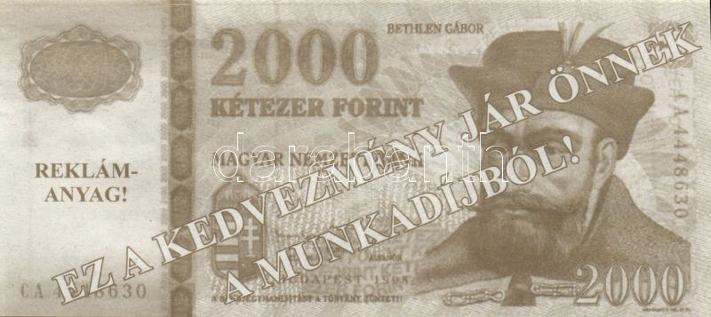 Beschreibung: 3klf bankjegyet ábrázoló modern reklámpénz