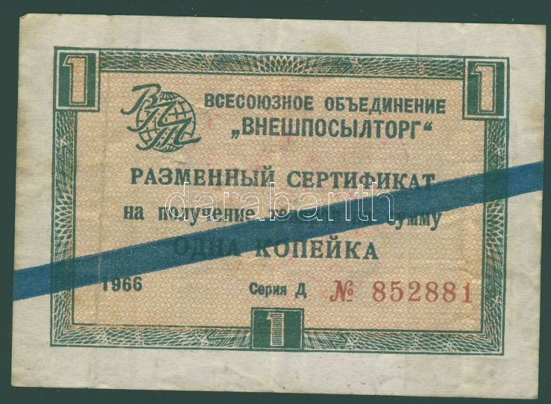 Beschreibung: Szovjetunió 1966. 1k bón T:II/II-
