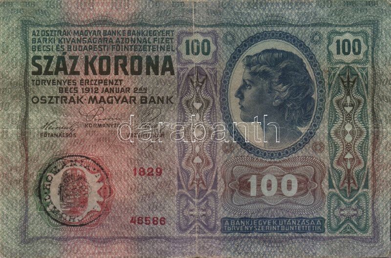 1904. 10K +1912. 100K román ellenbélyegzővel T:III,III+ +1912 100K pir... https://www.darabanth.com/de/83-Fernauktion/83.0/Numismatik/~5080/1904-10K-plus1912-100K-roman-ellenbelyegzovel-TIII-IIIplus-plus1912-100K-piros-Magyarorszag-korbel~II177021