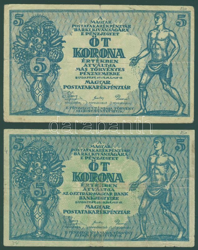 1919. 5K 2klf variáns T:III https://www.darabanth.com/de/83-Fernauktion/83.0/Numismatik/~5080/1919-5K-2klf-varians-TIII~II176978