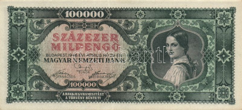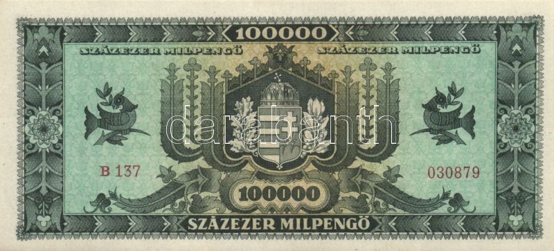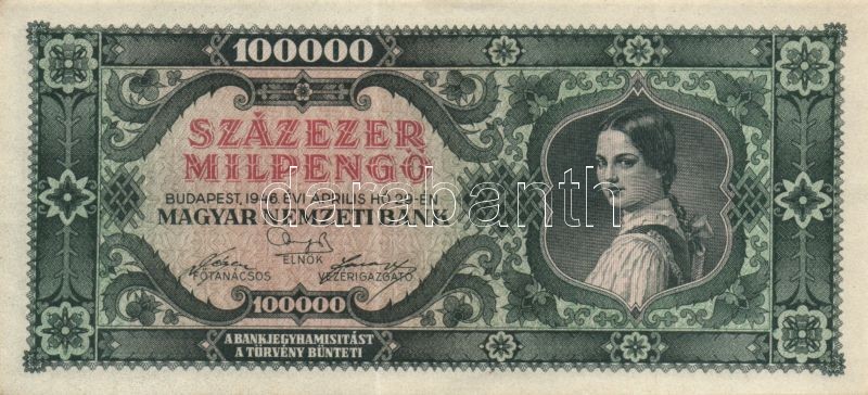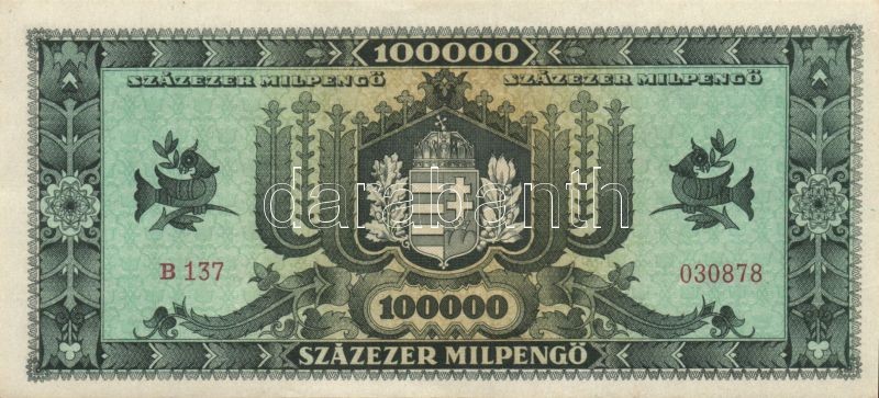 Beschreibung: 1946. 100.000Milpengő (2x) egymásutáni sorszámmal T:I
