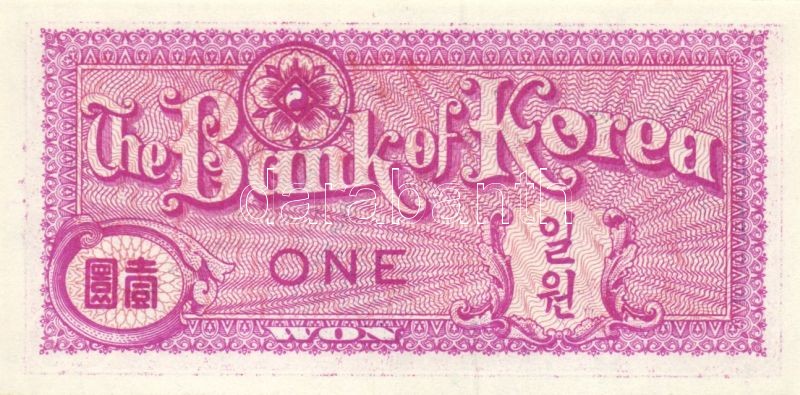 Dél-Korea 1953. 1W vízjel nélküli papíron! T:I https://www.darabanth.com/de/83-Fernauktion/83.0/Numismatik/~5081/Del-Korea-1953-1W-vizjel-nelkuli-papiron-TI~II176885