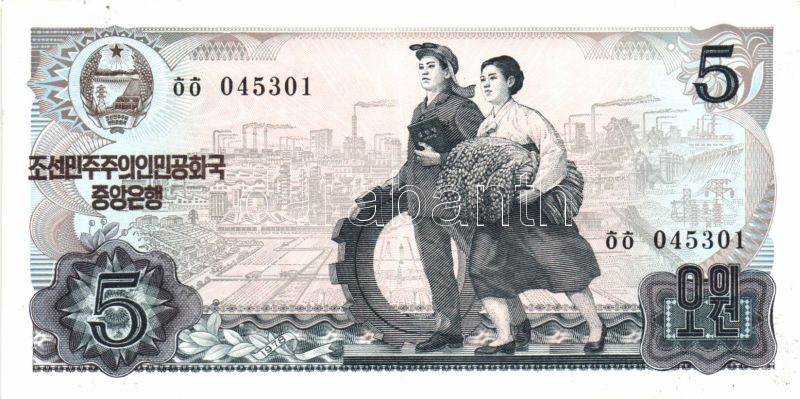 Észak-Korea 1978. 1W, 5W, 10W, 50W hátlapi zöld bélyegzővel! T:I https://www.darabanth.com/de/83-Fernauktion/83.0/Numismatik/~5081/Eszak-Korea-1978-1W-5W-10W-50W-hatlapi-zold-belyegzovel-TI~II176882