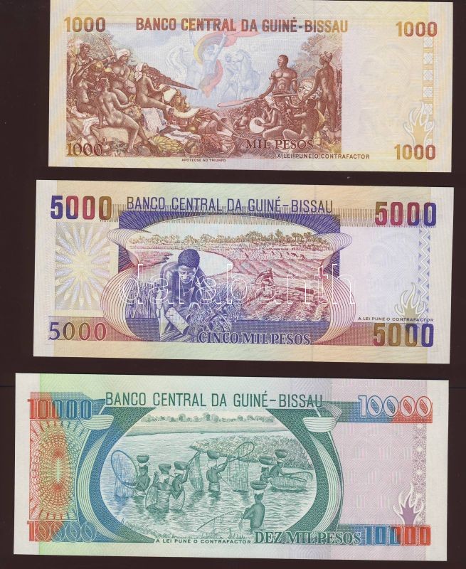 Guinea-Bissau 1990. 1000P, 5000P, 10.000P rangjelzés variáns T:I https://www.darabanth.com/de/83-Fernauktion/83.0/Numismatik/~5081/Guinea-Bissau-1990-1000P-5000P-10000P-rangjelzes-varians-TI~II174735