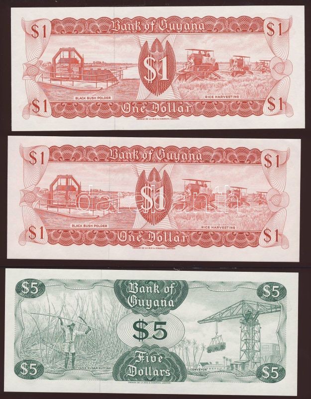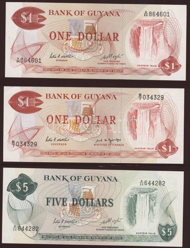Guyana 1966-92. 1$ (2x) klf aláírásokkal + 5$ (1x) T:I https://www.darabanth.com/de/83-Fernauktion/83.0/Numismatik/~5081/Guyana-1966-92-1USD-2x-klf-alairasokkal-plus-5USD-1x-TI~II174737
