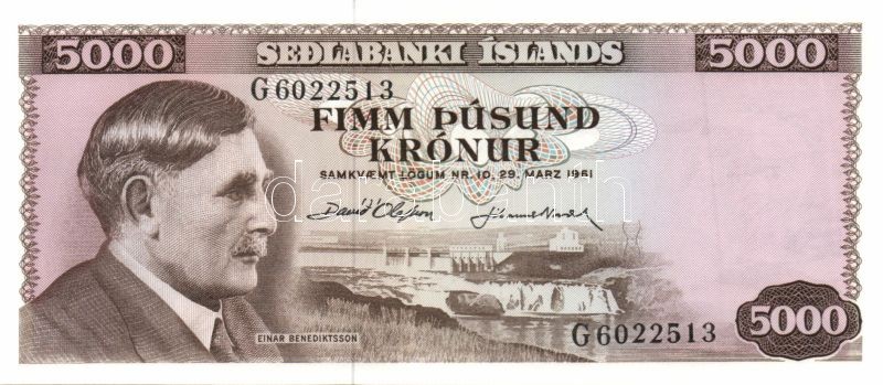 Beschreibung: Izland 1961. 10K, 25K, 100K, 500K, 1000K, 5000K teljes sor! T:I