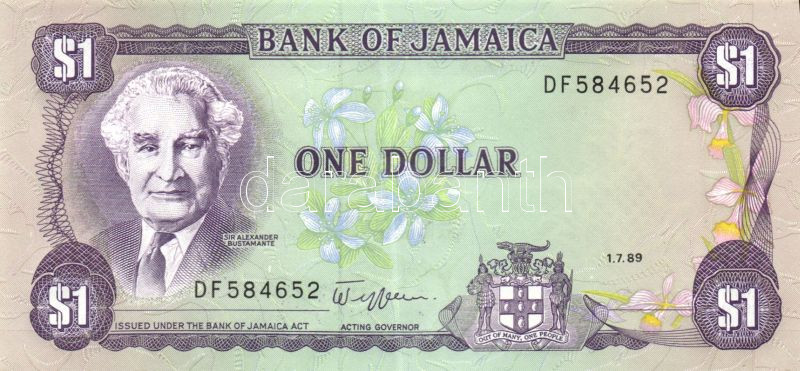 Jamaica 1989-90. 1$ (2x) klf aláírással T:I https://www.darabanth.com/de/83-Fernauktion/83.0/Numismatik/~5081/Jamaica-1989-90-1USD-2x-klf-alairassal-TI~II174784