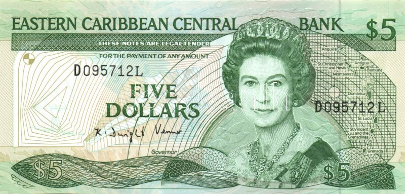 Kelet-Karibi Államok 1988-93. 5$ "L" Sign.2 T:I https://www.darabanth.com/de/83-Fernauktion/83.0/Numismatik/~5081/Kelet-Karibi-Allamok-1988-93-5USD-L-Sign2-TI~II174640