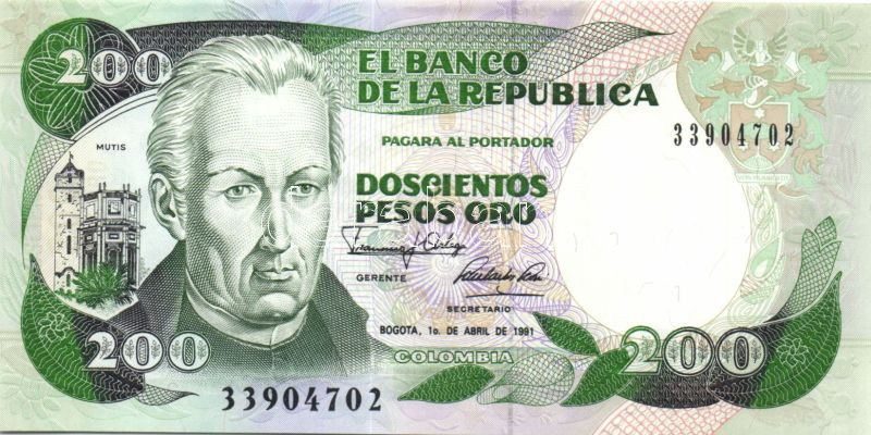 Kolumbia 1991.4.10. 200P T:I https://www.darabanth.com/de/83-Fernauktion/83.0/Numismatik/~5081/Kolumbia-1991410-200P-TI~II176295