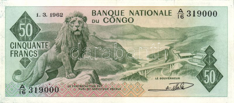 Beschreibung: Kongó 1962. 50Fr T:II Csak egyszer hajtva!