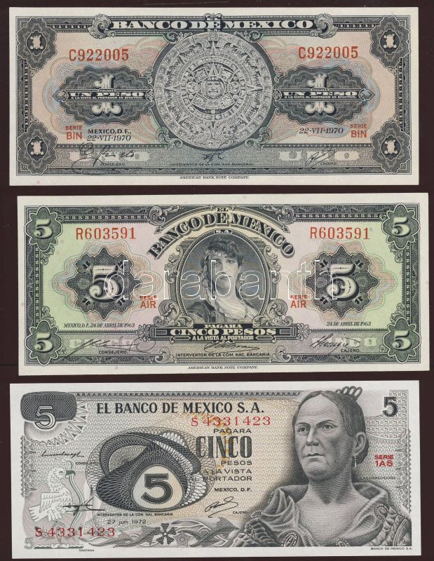 Mexikó 1963. 5P + 1970. 1P + 1972. 5P T:I https://www.darabanth.com/de/83-Fernauktion/83.0/Numismatik/~5081/Mexiko-1963-5P-plus-1970-1P-plus-1972-5P-TI~II177293