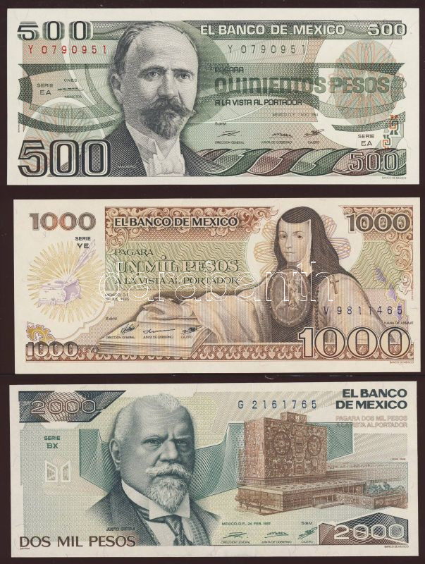 Beschreibung: Mexikó 1984. 500P + 1985. 1000P + 1987. 2000P T:I
