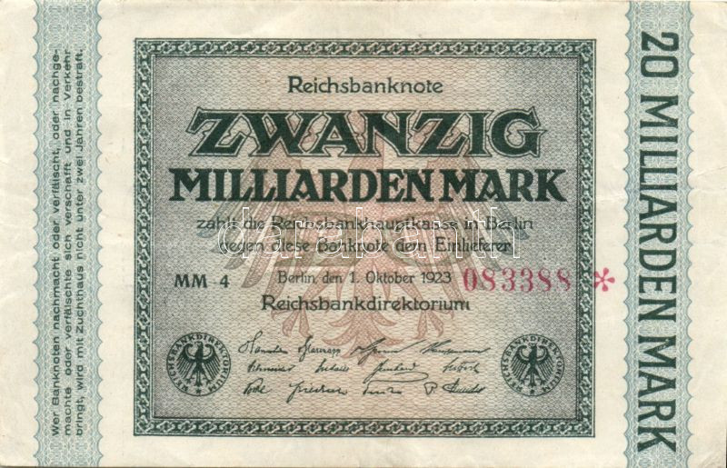 Német Birodalom/Weimari Köztársaság 1923. 20.000.000.000M T:II/III https://www.darabanth.com/de/83-Fernauktion/83.0/Numismatik/~5081/Nemet-BirodalomWeimari-Koztarsasag-1923-20000000000M-TIIIII~II174611