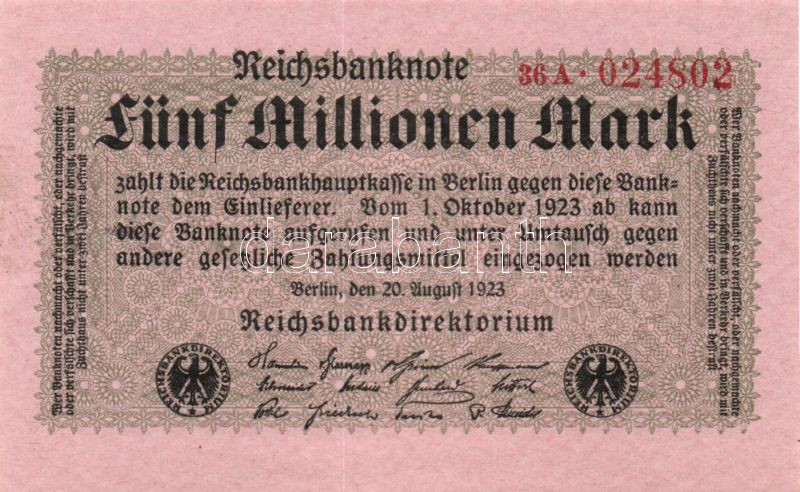 Német Birodalom/Weimari Köztársaság 1923. 5.000.000M T:I- https://www.darabanth.com/de/83-Fernauktion/83.0/Numismatik/~5081/Nemet-BirodalomWeimari-Koztarsasag-1923-5000000M-TI-~II177066
