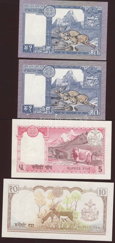 Nepál 1974. 1R(2x) 2klf szignóval, 5R, 10R(2x) 2klf szignóval T:I https://www.darabanth.com/de/83-Fernauktion/83.0/Numismatik/~5081/Nepal-1974-1R2x-2klf-szignoval-5R-10R2x-2klf-szignoval-TI~II177283