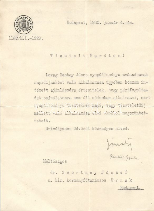 1930 Gömbös Gyula miniszterelnök, miniszter aláírása https://www.darabanth.com/de/84-Fernauktion/84.0/Andere-Sammelgebiete/~310/1930-Gombos-Gyula-miniszterelnok-miniszter-alairasa~II178543