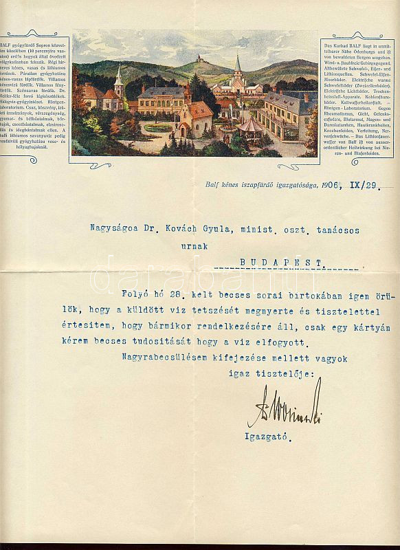 1906 Balf gyógyfürdő dekoratív igazgatói levélpapír + boríték https://www.darabanth.com/de/84-Fernauktion/84.0/Andere-Sammelgebiete/~311/1906-Balf-gyogyfurdo-dekorativ-igazgatoi-levelpapir-plus-boritek~II175522