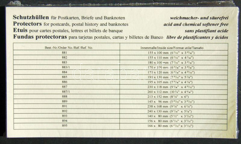 Beschreibung: Víztiszta bankjegytok 140x80mm (100db/cs), használatlan!