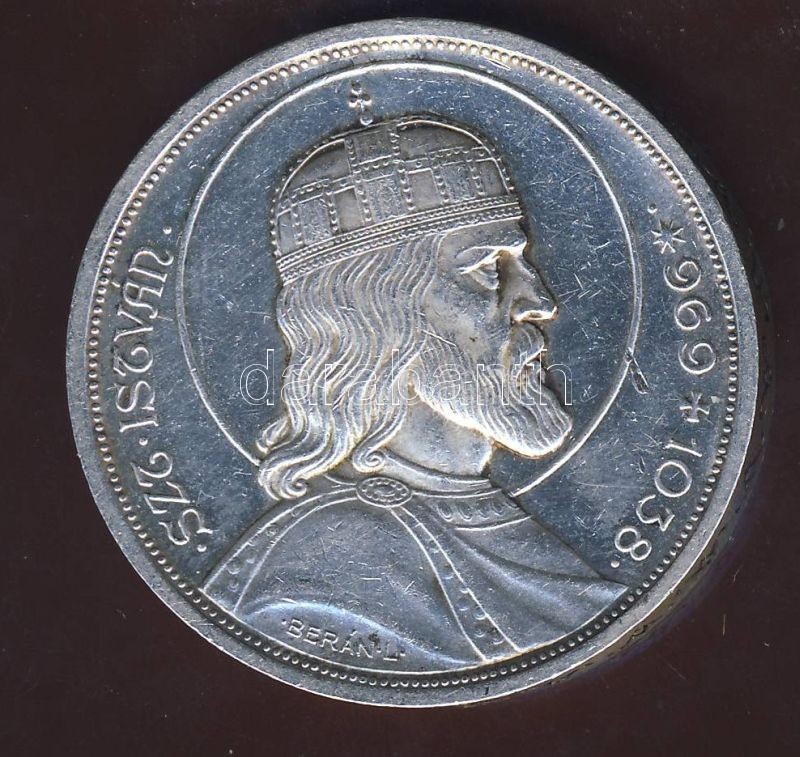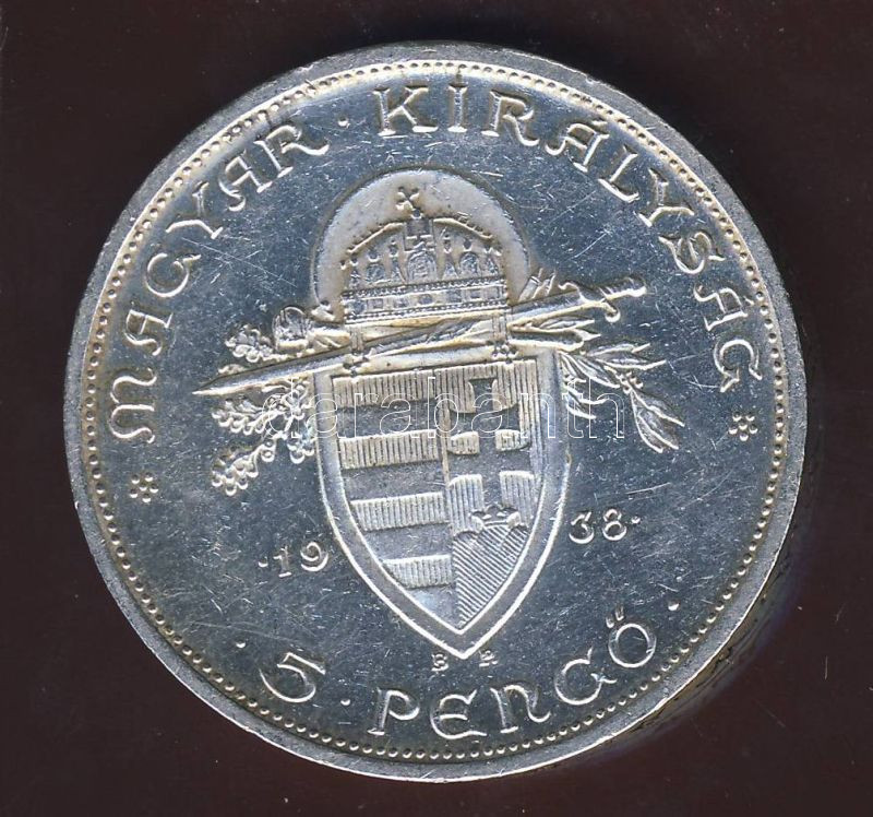1938. 5P Ag "Szt. István" T:2+ kis h https://www.darabanth.com/de/84-Fernauktion/84.0/Numismatik/~322/1938-5P-Ag-Szt-Istvan-T2plus-kis-h~II179751