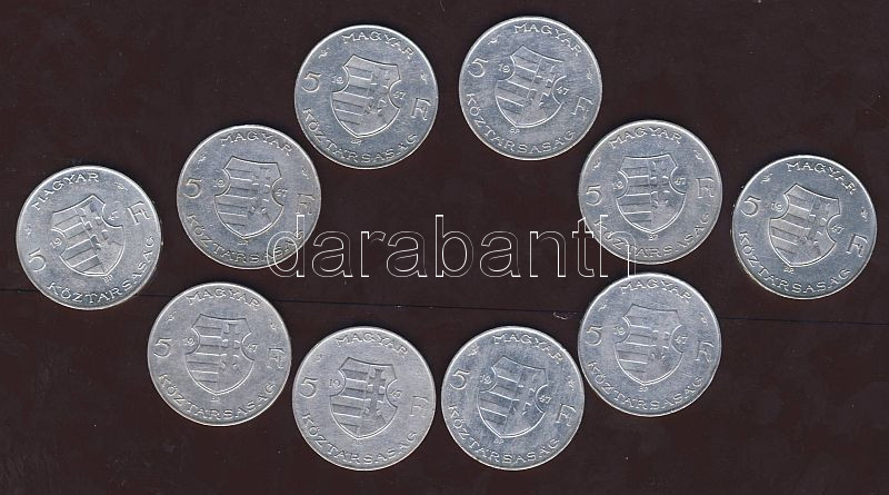 1947. 5Ft Ag (10x) "Kossuth" T:2,2/3 https://www.darabanth.com/de/84-Fernauktion/84.0/Numismatik/~322/1947-5Ft-Ag-10x-Kossuth-T2-23~II179183