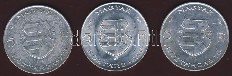1947. 5Ft Ag (3x) "Kossuth" T:2,2/3 https://www.darabanth.com/de/84-Fernauktion/84.0/Numismatik/~322/1947-5Ft-Ag-3x-Kossuth-T2-23~II179917