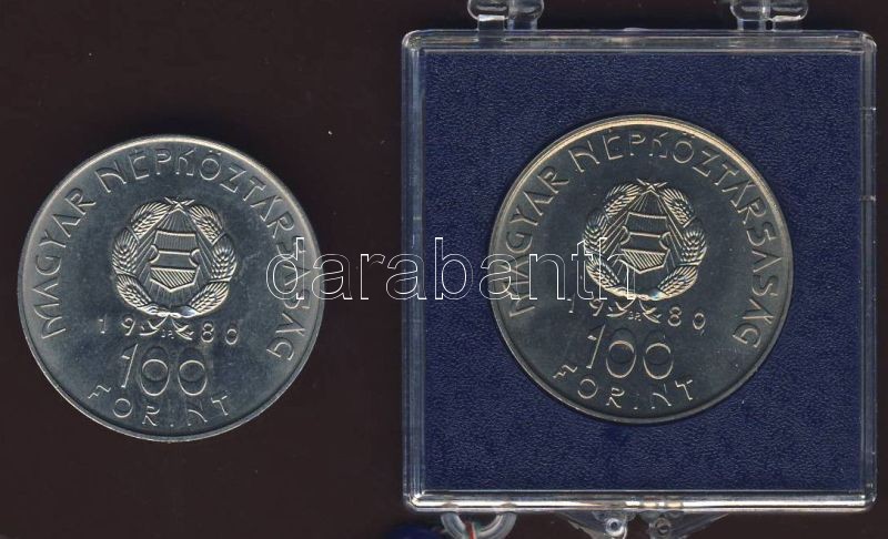Beschreibung: 1980. 100Ft "Szovjet-magyar közös űrrepülés" (2x) T:BU Az egyik eredeti, plombált MNB plasziktokban!