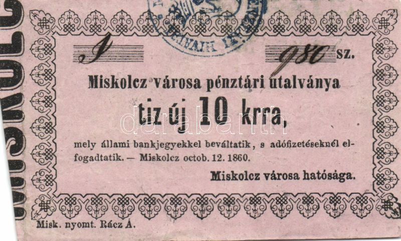 Beschreibung: Miskolc 1860. 10kr T:II+