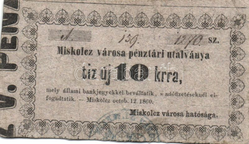 Miskolc 1860. 10kr vastagabb típusú értékszám T:II https://www.darabanth.com/de/84-Fernauktion/84.0/Numismatik/~325/Miskolc-1860-10kr-vastagabb-tipusu-ertekszam-TII~II179876