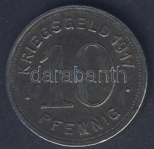 Német Birodalom/Császárság/Elberfeld 1917. 10Pf fém szükségpénz T:3 https://www.darabanth.com/de/84-Fernauktion/84.0/Numismatik/~325/Nemet-BirodalomCsaszarsagElberfeld-1917-10Pf-fem-szuksegpenz-T3~II178473
