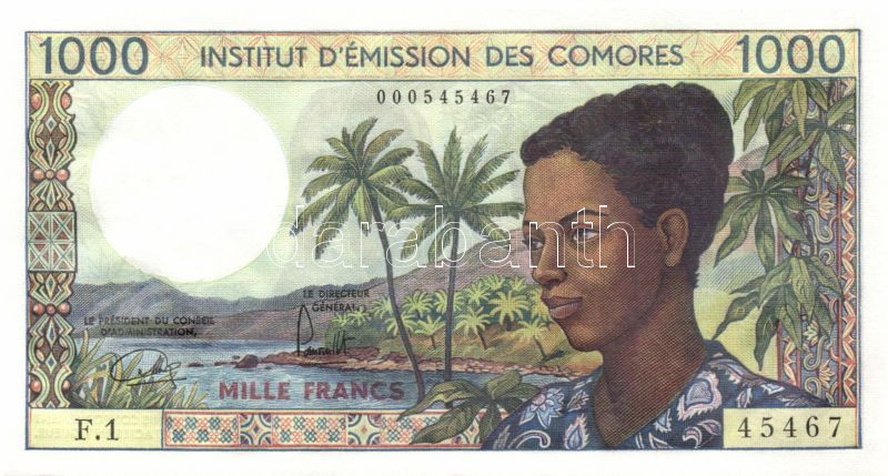 Comores Szigetek 1976. 1000Fr T:I https://www.darabanth.com/de/84-Fernauktion/84.0/Numismatik/~327/Comores-Szigetek-1976-1000Fr-TI~II179744