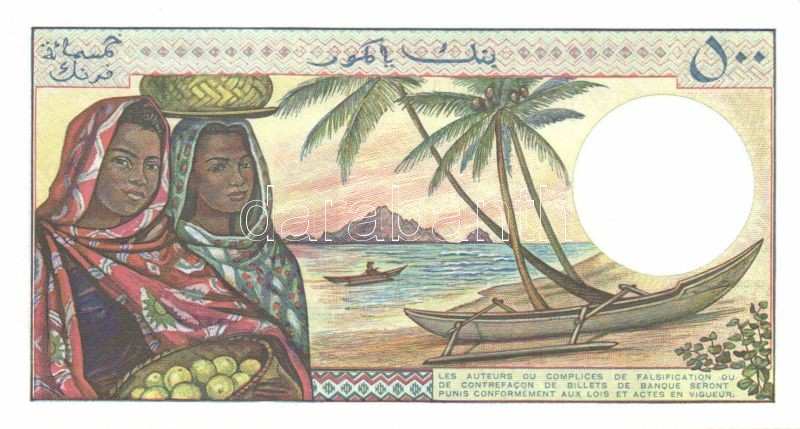 Beschreibung: Comores Szigetek 1986. 500Fr(normál) T:I