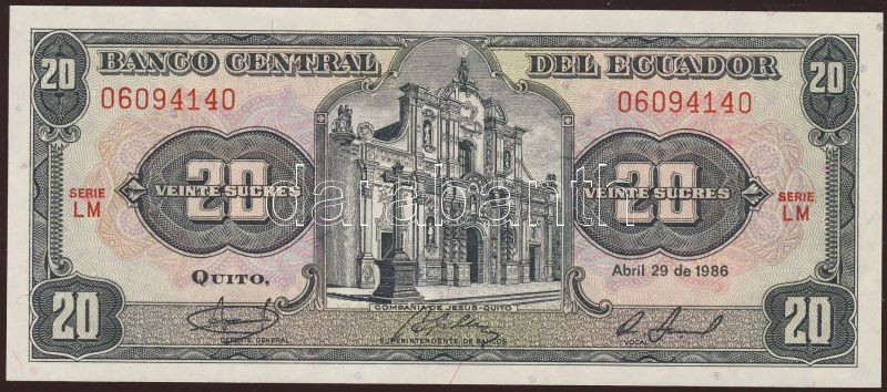 Ekvádor 1986.4.29. 20S "LM" T:I https://www.darabanth.com/de/84-Fernauktion/84.0/Numismatik/~327/Ekvador-1986429-20S-LM-TI~II174653