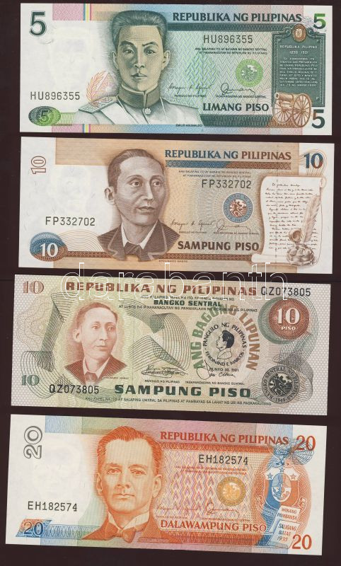 Fülöp szigetek 1981. 10P emlékkiadás T:I + 1985-94. 5P, 10P, 20P T:I,I... https://www.darabanth.com/de/84-Fernauktion/84.0/Numismatik/~327/Fulop-szigetek-1981-10P-emlekkiadas-TI-plus-1985-94-5P-10P-20P-TI-IIplus-20P-Csak-egyszer-hajt~II177641