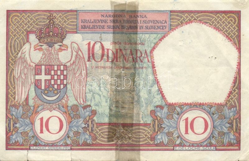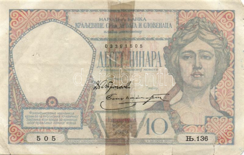 Jugoszlávia 1926. 10D T:IV R! https://www.darabanth.com/de/84-Fernauktion/84.0/Numismatik/~327/Jugoszlavia-1926-10D-TIV-R~II179845